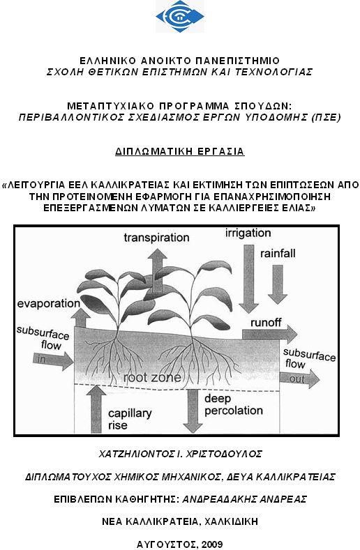 Μεταπτυχιακή εργασία στο ΕΑΠ για το δίπλωμα μεταπτυχιακής εξειδίκευσης στον Περιβαλλοντικό σχεδιασμό έργων υποδομής - ΛΕΙΤΟΥΡΓΙΑ ΕΕΛ ΚΑΛΛΙΚΡΑΤΕΙΑΣ ΚΑΙ ΕΚΤΙΜΗΣΗ ΤΩΝ ΕΠΙΠΤΩΣΕΩΝ ΑΠΟ ΤΗΝ ΠΡΟΤΕΙΝΟΜΕΝΗ ΕΦΑΡΜΟΓΗ ΓΙΑ ΕΠΑΝΑΧΡΗΣΙΜΟΠΟΙΗΣΗ ΕΠΕΞΕΡΓΑΣΜΕΝΩΝ ΛΥΜΑΤΩΝ ΣΕ ΚΑΛΛΙΕΡΓΕΙΕΣ ΕΛΙΑΣ
