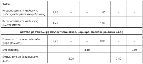 - Πίνακας 9.1 Αδιαφανείς επιφάνειες